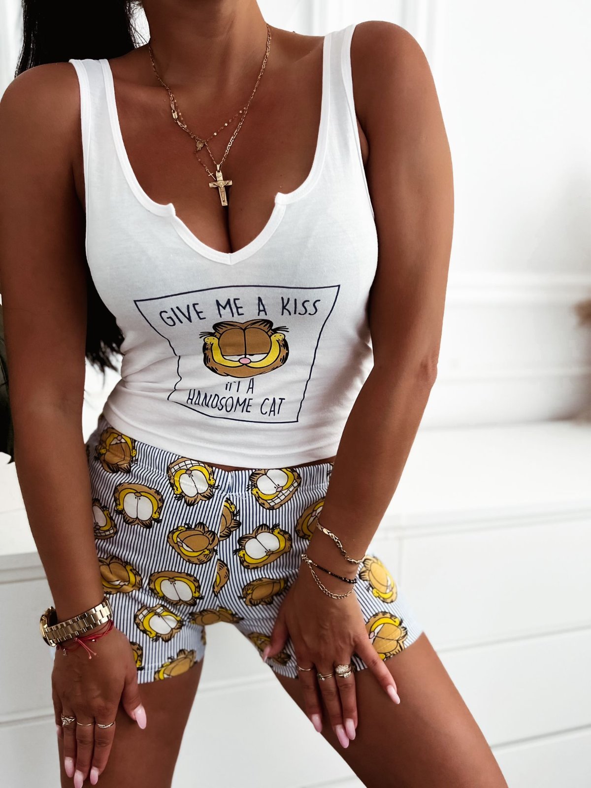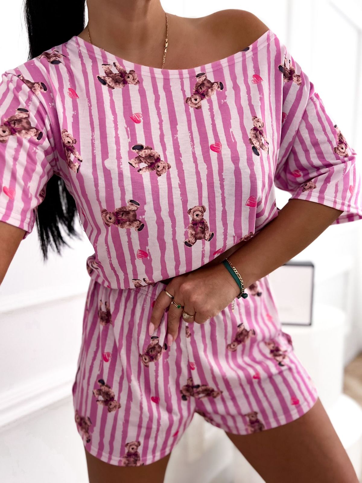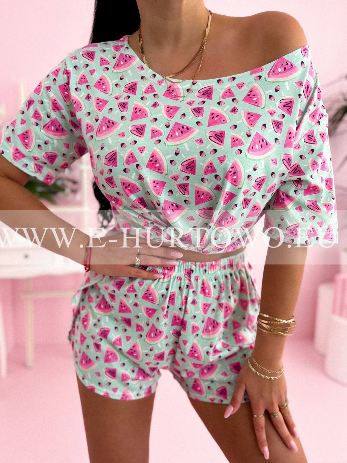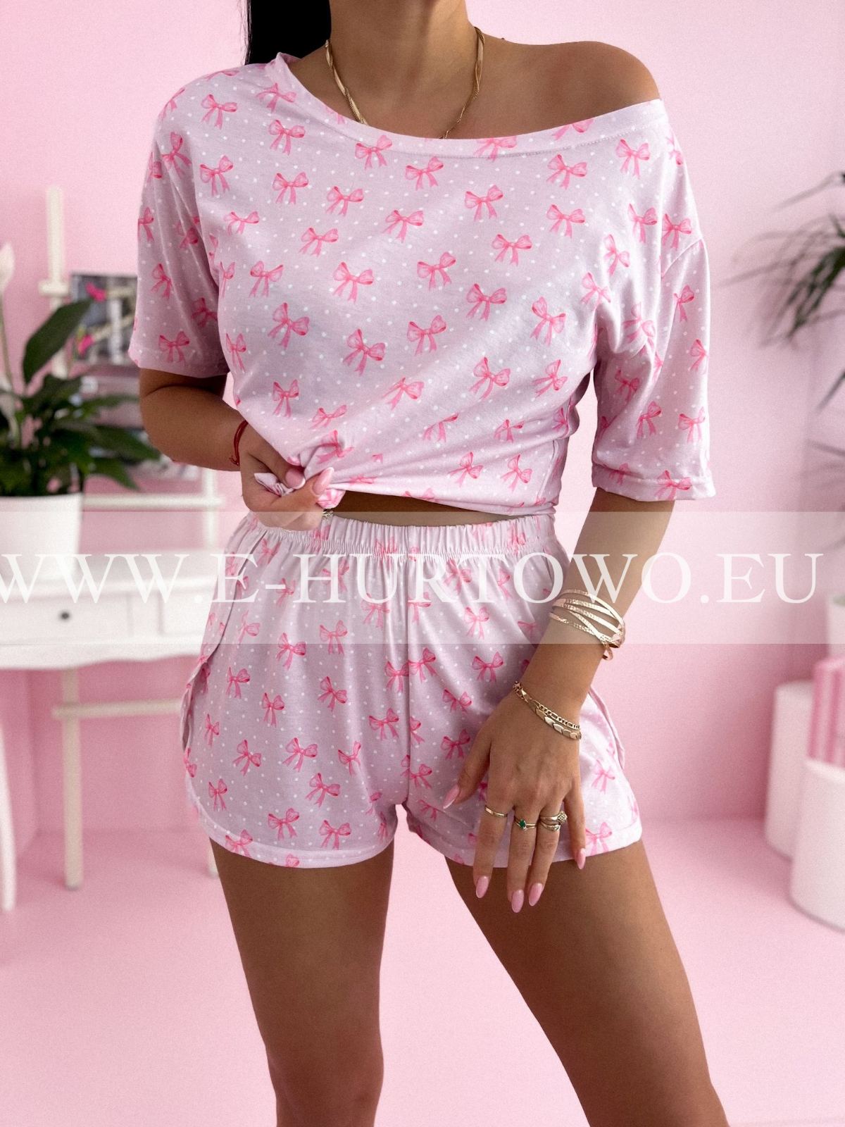 - piżama damska "krótka": krótki rękaw + krótkie spodenki,